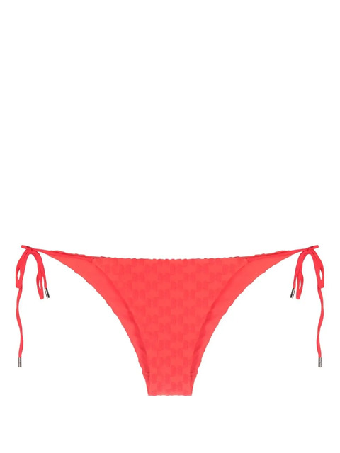 coral red debossed monogram pattern side-tie bottoms low-rise Be mindful to try on swimwear over your own garments.