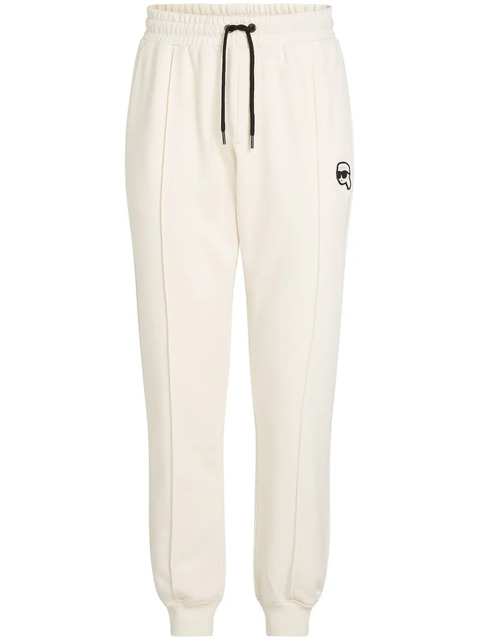white/black organic cotton signature Ikonik Karl motif seam detailing elasticated drawstring waistband two side inset pockets rear jetted pocket tapered leg elasticated ankles This item is made from at least 50% organic materials. Learn more about what makes a product Conscious on our Conscious Criteria page