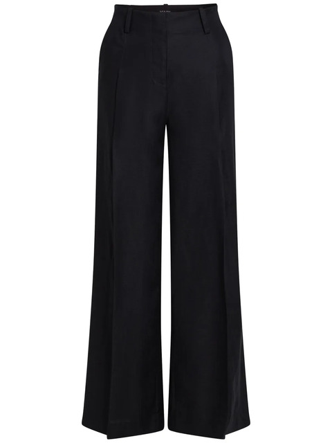 black lyocell high-rise belt loops concealed front fastening two side slash pockets two rear welt pockets wide leg