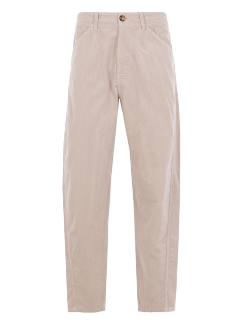 light sand corduroy texture button fastening front pockets back patch pockets belt loops