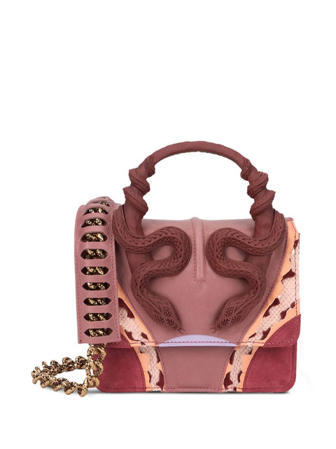 dusty rose snake-shaped handle leather construction suede panels cut-out detailing leather and metal detachable strap