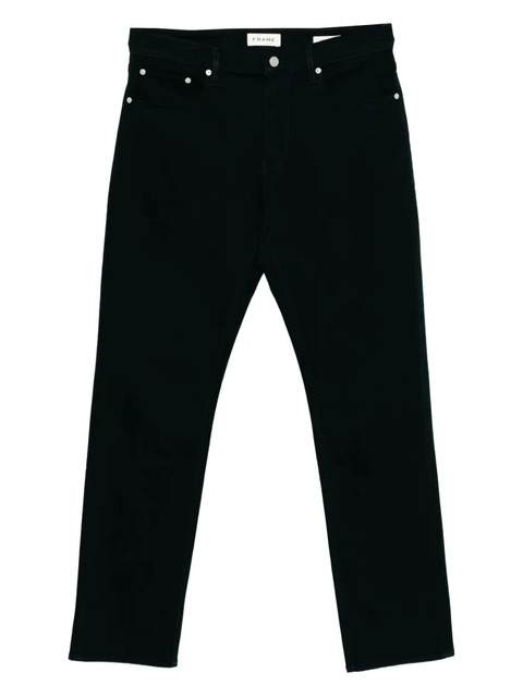 dark blue front button and zip fastening two side seam pockets two rear patch pockets