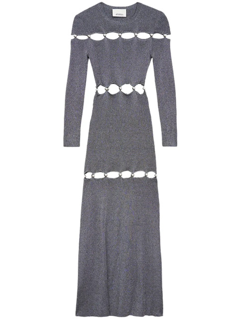 silver-tone round neck long sleeves stretch-design cut-out detailing