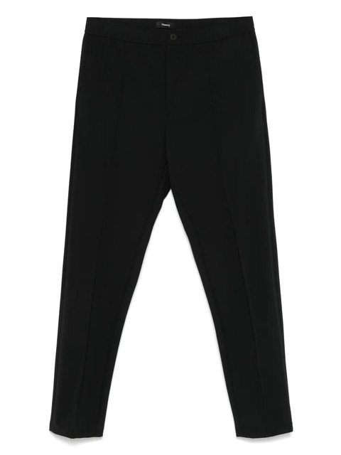 black elasticated drawstring waistband front button and zip fastening two diagonal pockets to the sides rear jetted pocket