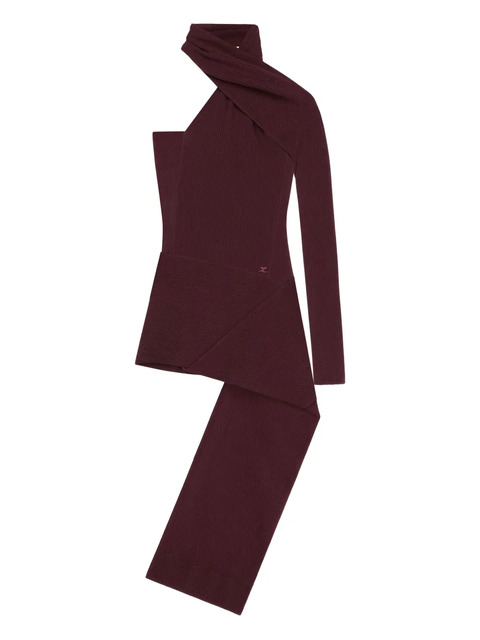 burgundy ribbed knit one-shoulder design logo detail