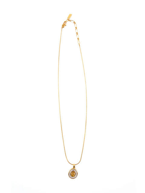 2000s gold-tone round pendant chain-link detailing Cassandre pendant engraved logo Condition: GOOD. This previously owned and used item is in good condition with minimal signs of use. This may include fading of material or plating and scratches.