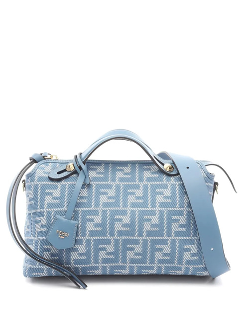 2020s light blue jacquard pattern top handle zip fastening leather details