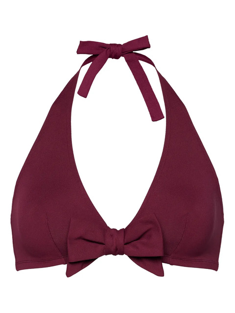 purple halter neck bow detail triangle cups Be mindful to try on swimwear over your own garments.