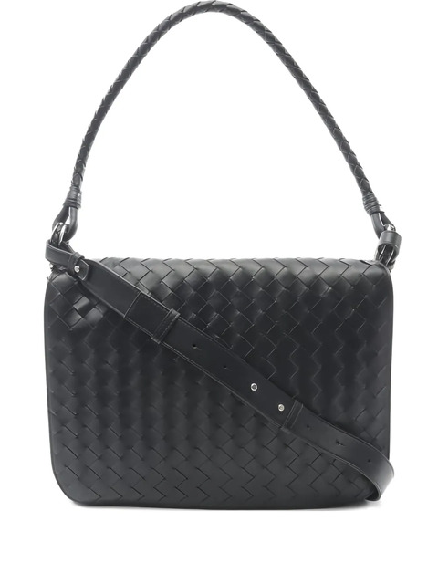 2020s black Intrecciato weave detachable adjustable shoulder strap fixed shoulder strap internal zip pocket two-way design