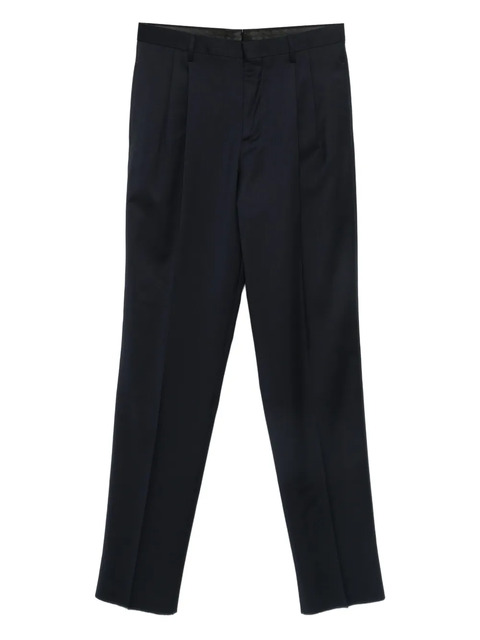 navy blue virgin wool front concealed fastening belt loops raer welt pockets