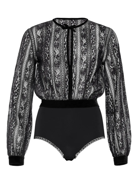 black lace panelling long sleeves velvet keyhole neckline Just a reminder that this piece must be tried on over your own garments.