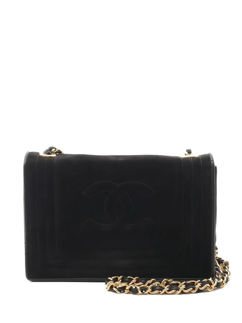 1986-1988 black suede gold-tone hardware chain strap Coco Mark motif flap fastening
