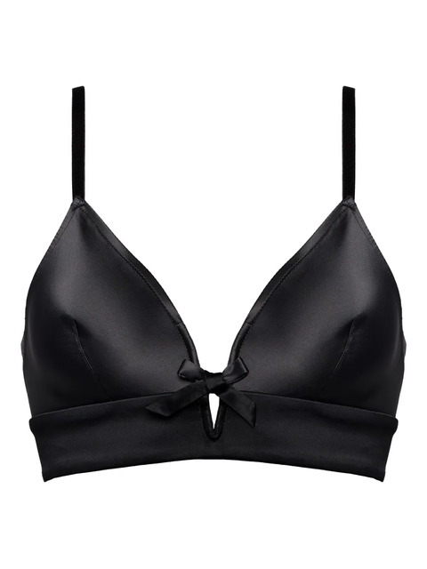black triangle cups adjustable straps hook-and-eye closure central bow detail