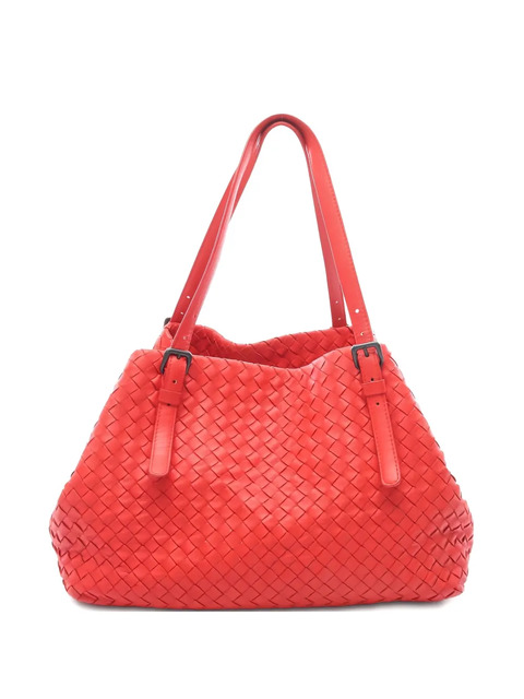 2000s red Intrecciato weave leather adjustable straps internal slip pocket