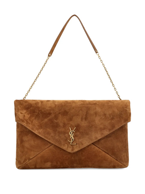brown caramel gold-tone hardware chain-link shoulder strap envelope style signature Cassandre plaque main compartment