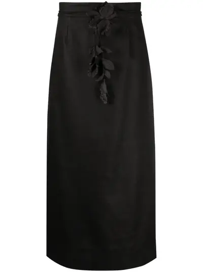 black linen/flax cotton lining detachable floral waist belt concealed rear zip fastening straight hem mid-length