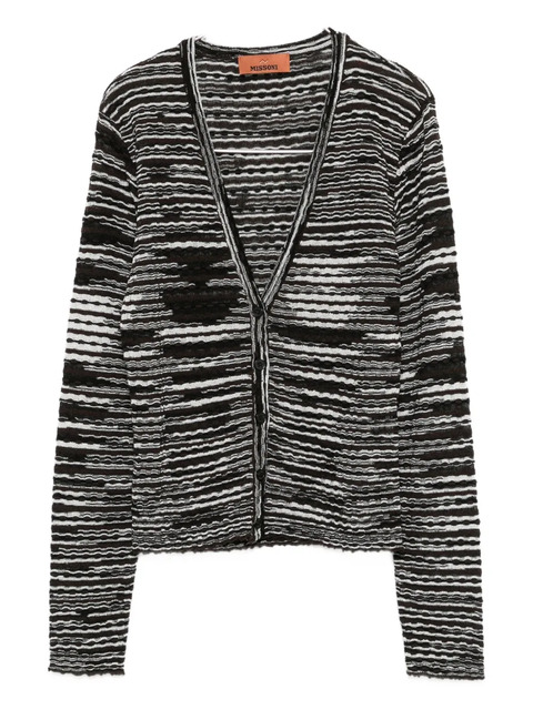 black striped design V-neck front button fastening long sleeves ribbed hem The item you receive may differ slightly from the item photographed. This is due to the artisanal nature with which all Missoni products are constructed.
