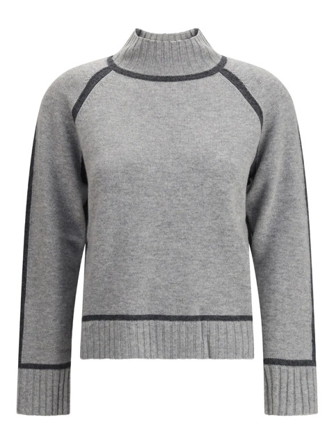 grey high neck raglan sleeves ribbed edges ribbed hem ribbed cuffs