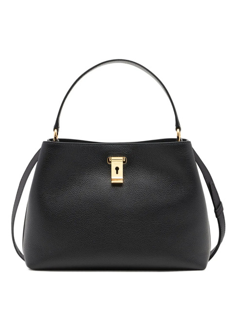black grained leather top handle detachable shoulder strap gold-tone hardware lock detail