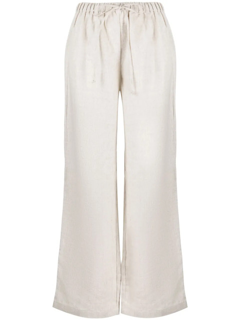 sand beige linen/flax mid-rise straight leg elasticated drawstring waistband