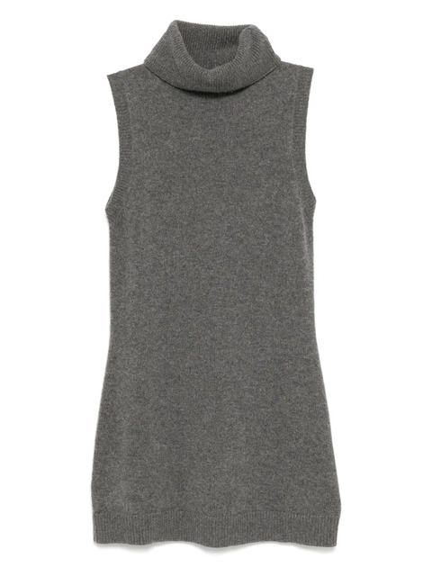beluga grey roll neck sleeveless ribbed cuffs and hem