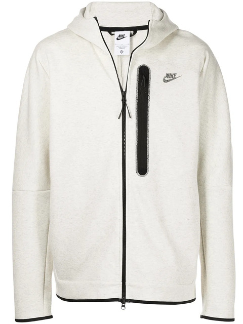 white/heather grey cotton-blend fleece texture embroidered logo at the chest classic hood front zip fastening zip-fastening chest pocket long sleeves