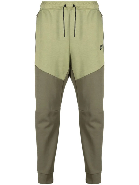 khaki/light green cotton blend jersey fleece elasticated drawstring waistband signature Swoosh logo detail two side inset pockets rear zip-fastening pocket elasticated ankles