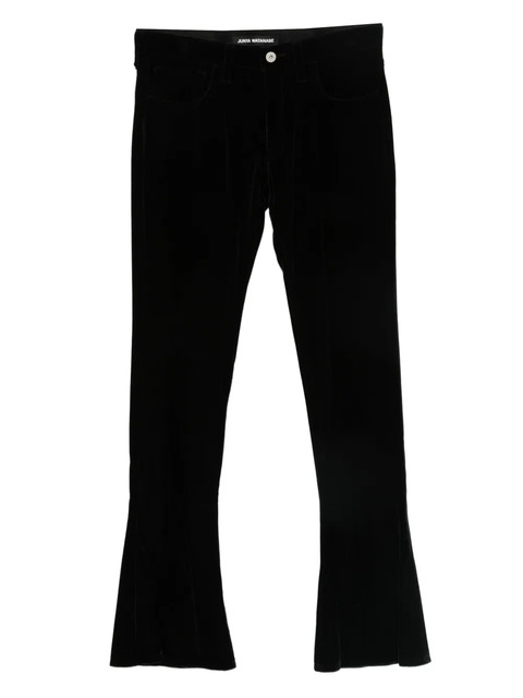 black front button and zip fastening velvet flared leg