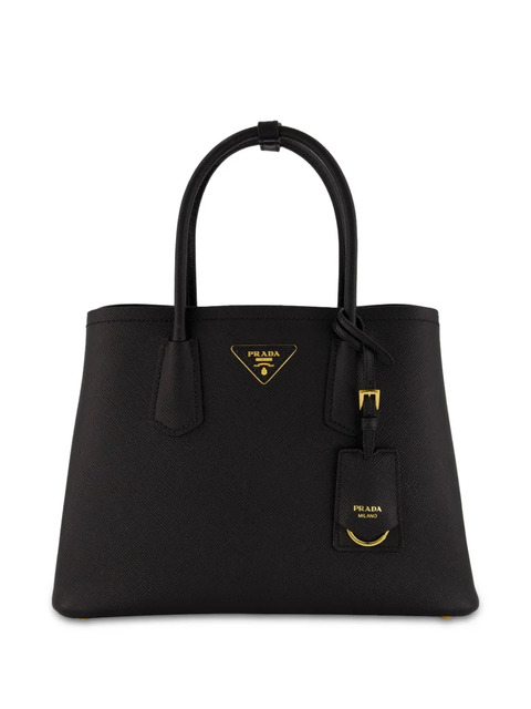 Black calf leather black open top two rolled top handles adjustable detachable shoulder strap enamel triangle logo