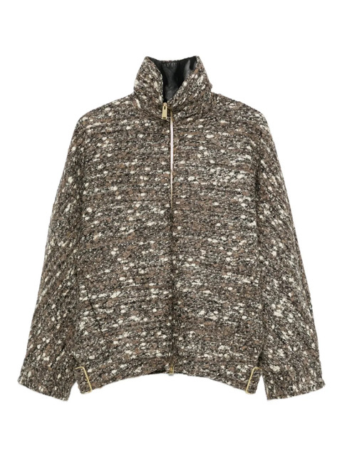 brown virgin wool blend high neck front zip fastening long sleeves