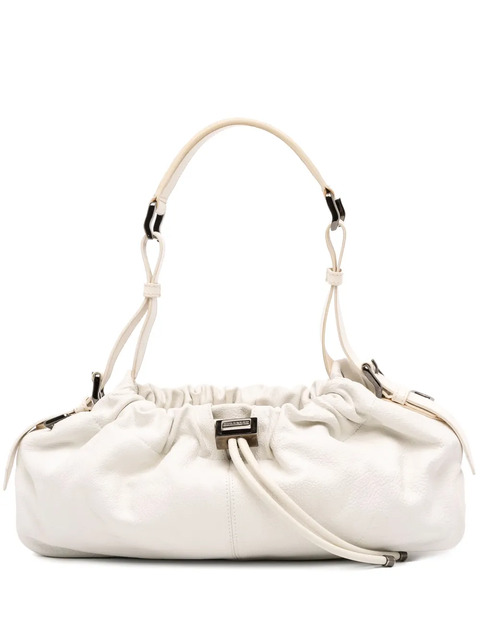 leather body flat adjustable leather strap open top with drawstring closure interior zip and slip pockets white Serial Number: ITPELGIG21PRA This item has no inclusions. Condition: GOOD. This previously owned and used item is in good condition with minimal signs of use. This may include fading of material or plating and scratches. Please refer to the photos on this product page for a detailed view of the item, including any damages declared.