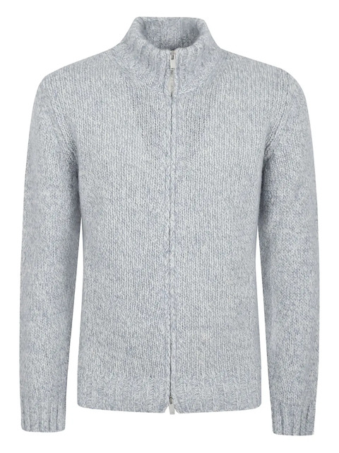 light grey zip fastening high neck long sleeves ribbed hem and cuffs