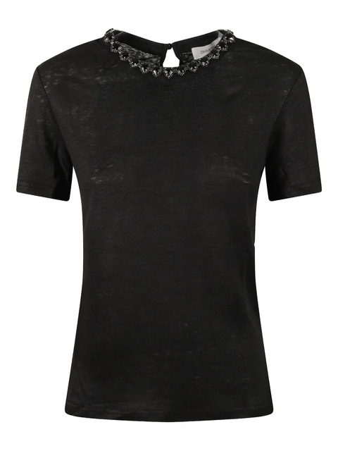 black embellished collar keyhole detail at the rear short sleeves round neck