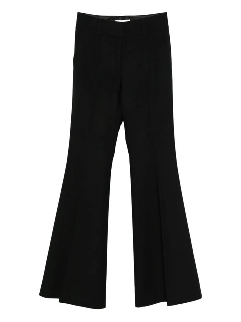 black flared leg seam detail belt loops concealed fastening wool