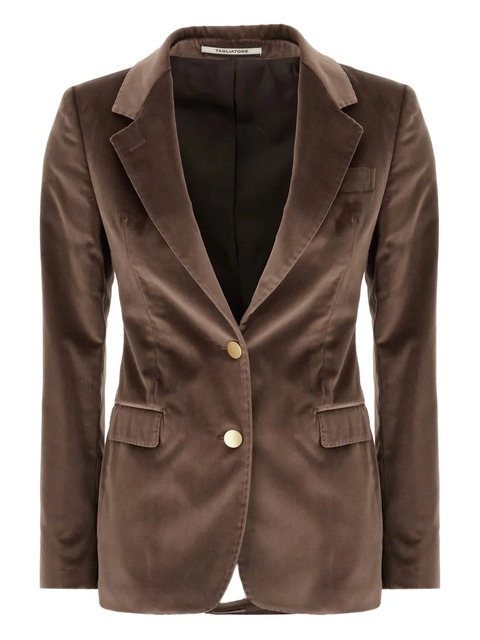brown velvet effect notched lapels front button fastening long sleeves front flap pockets
