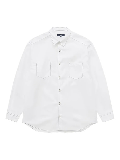 white chest pockets button fastening long sleeves tonal stitching curved hem