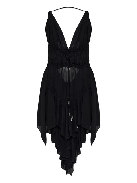 black V-neck lace-up detailing ruffled detailing sleeveless handkerchief hem backless