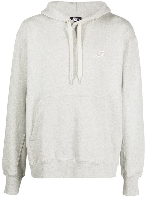 grey heather cotton-blend embroidered logo at the chest drawstring hood long sleeves front pouch pocket ribbed cuffs ribbed hem