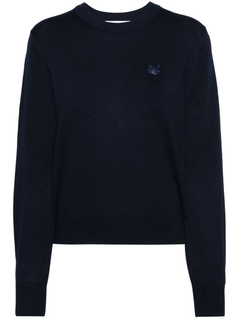 navy blue wool knitted construction fine knit crew neck signature fox motif long sleeves ribbed cuffs and hem straight hem