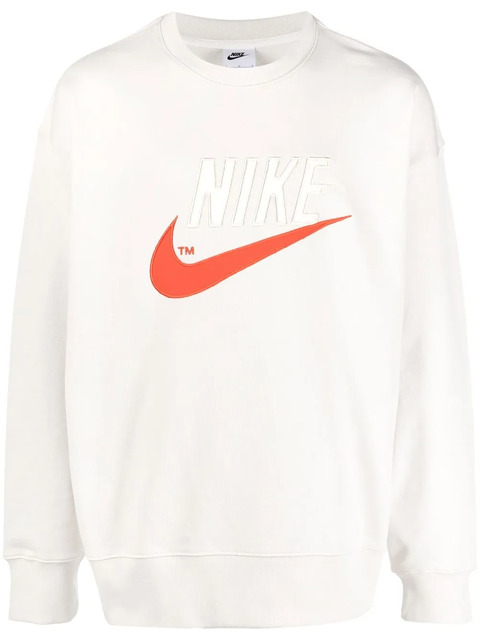 white/orange cotton jersey fleece signature Swoosh logo detail crew neck long sleeves straight hem