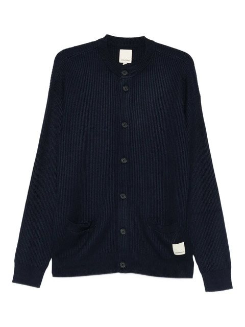 navy blue ribbed knit front button fastening round neck long sleeves