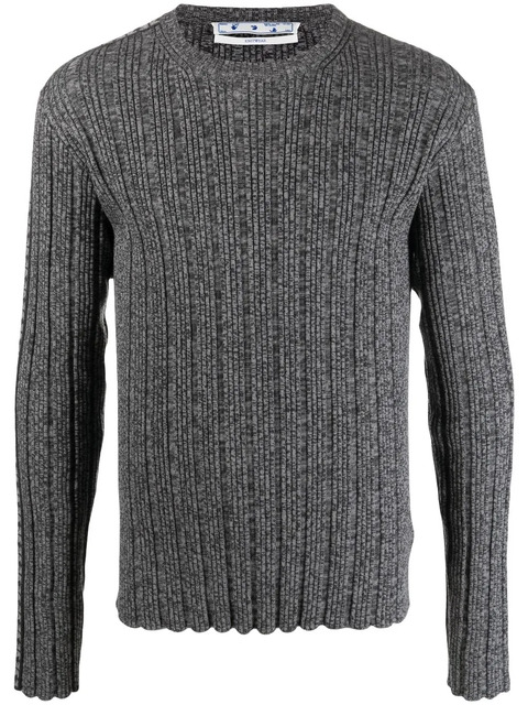 grey cotton-wool blend signature Arrows motif ribbed knit round neck long sleeves straight hem