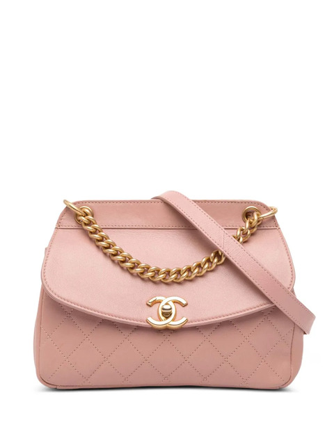 quilted lambskin leather body chain link handle flat leather strap flap with CC turn lock closure exterior back slip pocket interior zip pocket pink Serial Number: 27545885 This item has no inclusions. Condition: GOOD. This previously owned and used item is in good condition with minimal signs of use. This may include fading of material or plating and scratches. Declared Damages: Exterior Top Feature(s) Minor Splitting. Interior Lining Feature(s) Minor Loose Stitching. Please refer to the photos on this product page for a detailed view of the item, including any damages declared.