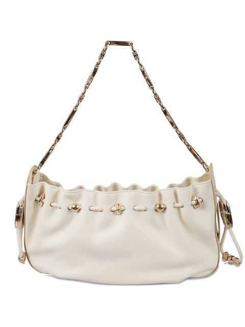 ivory white chain strap drawstring fastening gold-tone hardware gathered detailing This piece comes complete with a protective dust bag.