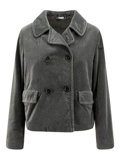 grey cotton double-breasted button fastening notched lapels front flap pockets