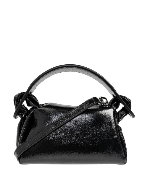 black top handle detachable shoulder strap top zip fastening main compartment knotted detailing
