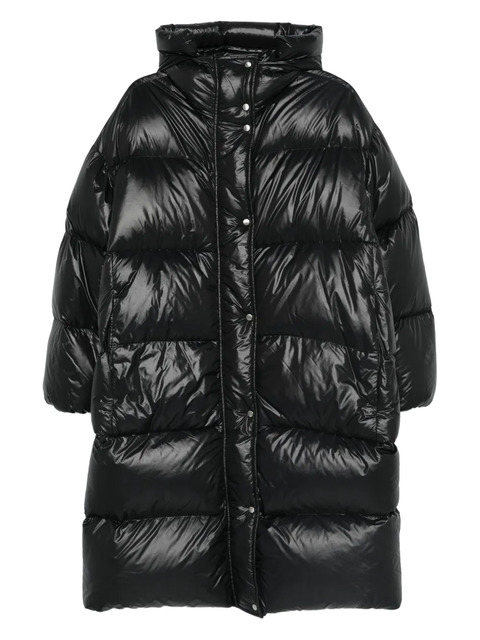 black front press-stud fastening classic hood quilted long sleeves side pockets