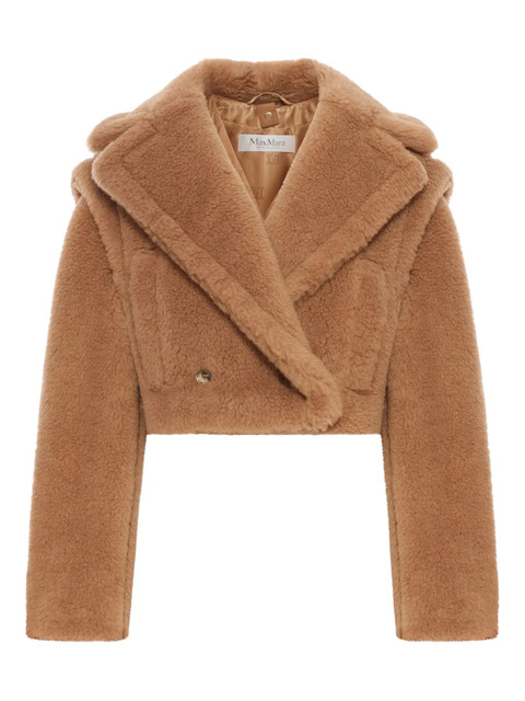 camel brown notched lapels front button fastening side pockets long sleeves straight hem cropped