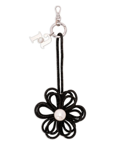 black faux pearl embellished flower motif lobster clasp fastening