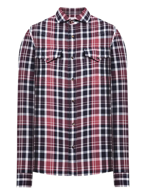 red check pattern front press-stud fastening classic collar long sleeves two chest flap pockets